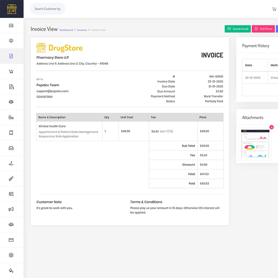 Drug Store theme is an affordable solution to help grow your business and track your store data like stock, purchases, billings and report, purchase report and so many things.drug store website source code.It store all of your pharmacy data for easy retrieval and tracking including your Medicines, Employees, Customers, POS/Bill, Invoice, Purchase