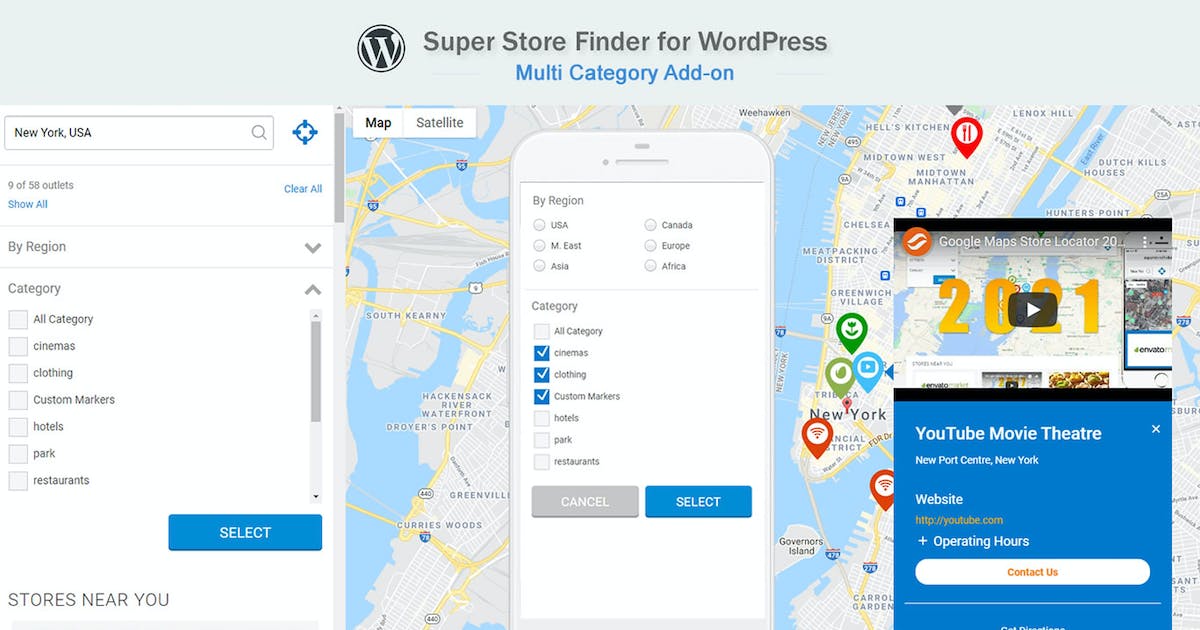 Google Maps Store Locator for WordPress is a fully-featured WordPress Plugin integrated with Google Maps API v3 that allows customers to locate your stores easily. The Advanced Google Maps Plugin for WordPress imports from multiple sources and offers street views and custom icons for maps on WordPress.