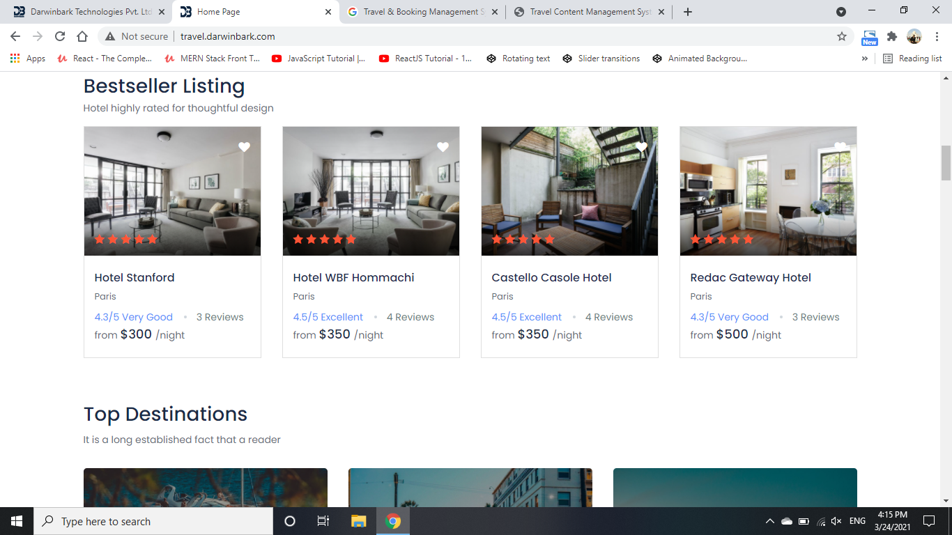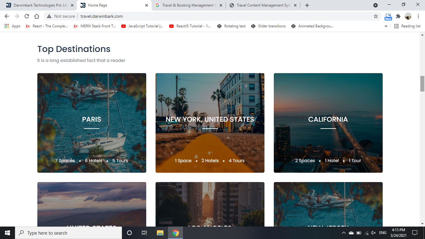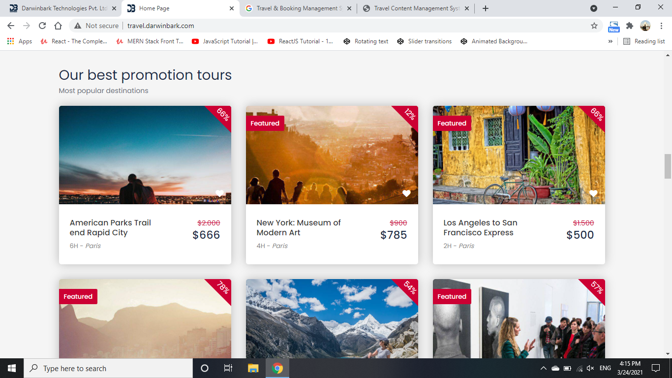 A team of experts in content managed website for travel! We built dynamic CMS solutions to manage & automate your travel agency business more efficiently.Travel management software provides users with a platform for planning,It will provide a facility to create and manage Travel Packages, you can update Blogs & Reviews, Also, manage Supplier along with booking management system.Darwinbark Travel CMS (Content Management System) provides an interface that will help you convert and manage all of your offline resources online.